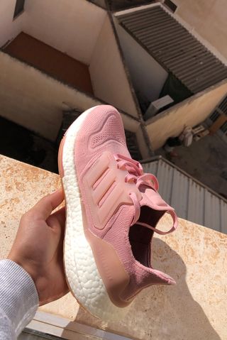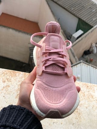 Zapatillas deportivas Adidas en color rosa y blanco. Perfectas para el día a día. - Diseño moderno y cómodo. - Suela con tecnología Boost para mayor amortiguación.