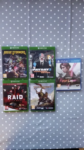 Lote de 5 videojuegos para PlayStation 4 y Xbox One. - Rogue Stormers (Xbox One) - Payday 2: Crimewave Edition (Xbox One) - RAID: World War II (Xbox One) - Titan Quest (Xbox One)... NUEVO precintado - inFAMOUS: First Light (PS4) En perfecto estado..... 20€ todos .... No envío
