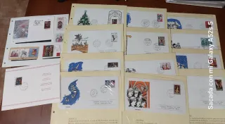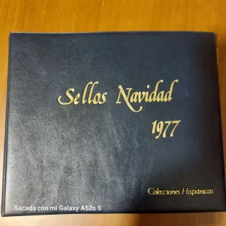 Álbum de sellos de Navidad de 1977. - Incluye sellos de varios países. - Tapa dura azul con detalles dorados. - Título: Sellos Navidad 1977. - Editorial: Colecciones Hispanicas.