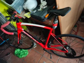Bicicleta de carretera Ridley Fenix en color rojo y blanco. Ideal para entrenamientos y competiciones. Talla L -Ultegra Electrónico di2 - Cuadro de carbono. - Frenos de disco. - Ruedas DT Swiss.