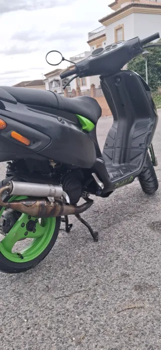 Ciclomotor de dos plazas con detalles en verde. - Asiento negro. - Llantas verdes. - Espejo retrovisor. Perfecto estado. Para los interesados vengan a verla.