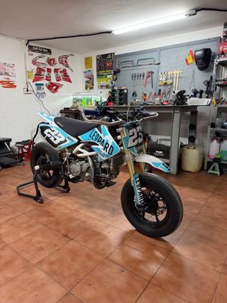Se vende pit bike 160 en perfecto estado lista para rodar no hay que hacerle absolutamente nada. Tiene 14 horas desde que se compró tiene cuenta horas y rpm. Muelles de válvulas duros 28 keihin Latiguillos del radiador aceite metálicos y con mayor diámetro para mejorar la refrigeración Suspensión regulable para el rebote Se daría carburador de serie el juego de plásticos original, otro juego de gomas el original y dos piñones para variar la relación de transmisión según el circuito