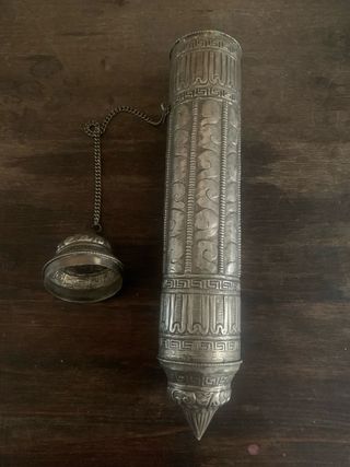 Porta documentos de metal 30 cm Grabado Comprado en anticuario pueblo chino. Guilin. China