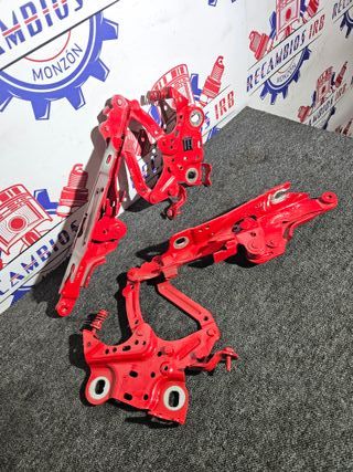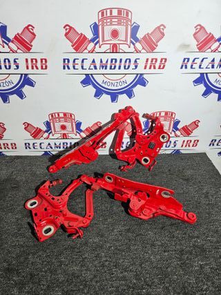 Juego de bisagras para el capó de un Mini Cooper F56. - Color rojo. - Piezas metálicas.