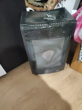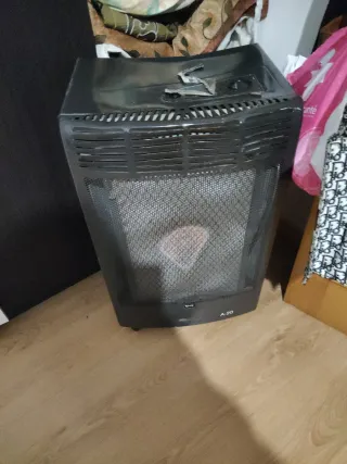 Estufa de gas butano modelo A-20. - Color negro. - Fabricada en metal y plástico.