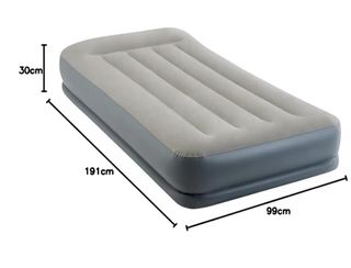 - Uso interior y para camping, colchón hinchable Intex para dos personas, medidas 137x 191 x 25 cm y soporta un peso de 273 kg. - Composición: borde y base en vinilo de gran durabilidad, superficie flocada con tacto suave y forma acanalada, resistente al agua. - Tiempo aproximado de hinchado: menos de 5 minutos, válvula 2 en 1 con boquilla ancha para facilitar el inflado y desinflado, plegado compacto. - Construcción interior con fiber-tech, tecnología exclusiva Intex de miles de finas fibras de poliéster que ofrecen la máxima adaptación al cuerpo y firmeza. - Construcción robusta. - Superficie aterciopelada.