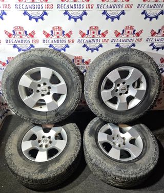 Juego de cuatro llantas de aluminio de 16 pulgadas. Proceden de un Nissan Navara D40. Neumáticos al 40%. - Diámetro: 16 pulgadas. - Material: Aluminio. - Compatibles con Nissan Navara D40.