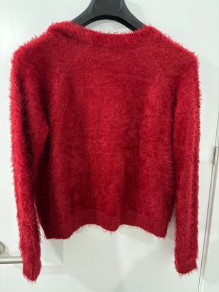 Chaqueta de punto roja peluda