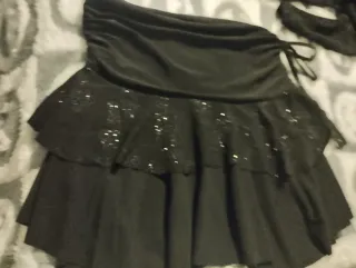 Minifalda negra con volantes y brillantes.