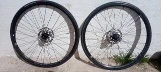Juego de ruedas para carretera compuesto de dos llantas de la marca fulcrun con discos Shimano center look. Usadas 2 semanas , prácticamente nuevas - Discos 160 mm - cámaras nuevas. - Neumáticos nuevos Vittoria Zaffiro Pro.