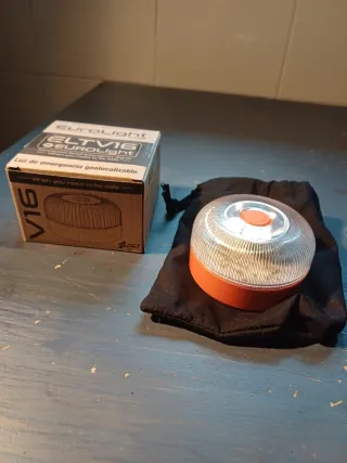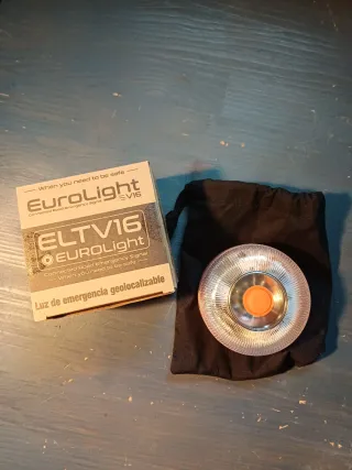 Baliza de emergencia V16 EuroLight, conectada y geolocalizable. - Señal luminosa para vehículos. - Homologada V16. - Incluye bolsa de almacenamiento. - En su caja original sin estrenar, se vende porque me he comprado un coche nuevo y regalaban una baliza. - Se ha desprecintado la caja para hacer las fotos. - Está en el listado q la DGT colgó en su página web para verificar que las balizas estuvieran realmente homologadas