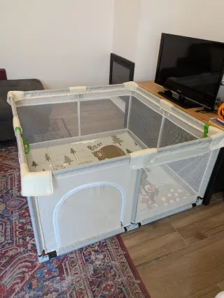 Parque infantil modular y plegable de la marca Fodoss. - Medidas: 120x120 cm. - Color: Beige. - Diseño infantil. - Fabricado con materiales reciclados. Usado por 8 meses y nos ha servido bien durante este tiempo. Comprado nuevo en 2024 por 100 euros lo vendo por menos de la mitad del precio.