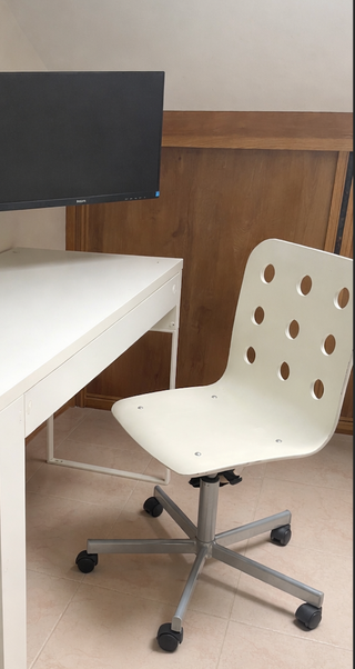 Vendo escritorio blanco con estantería lateral y silla de oficina. Ideal para estudiar o trabajar desde casa. El escritorio tiene varios compartimentos para guardar libros, material o accesorios. La silla es cómoda y tiene ruedas. Todo está en buen estado y listo para usar. Se vende junto o por separado. Precio: • Escritorio: 60 € • Silla: 15 € • Conjunto: 75 € negociables