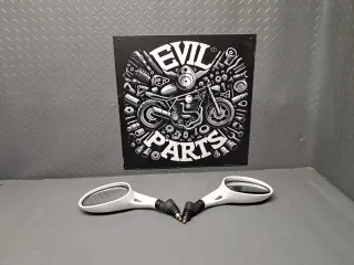 Par de retrovisores para Kymco Bet&Win del año 2006. Incluye el retrovisor izquierdo y el derecho. - Color blanco. - Diseño deportivo. Para mas recambio de éste u otros modelos, no dudes en preguntar. #evilparts Ri:b17