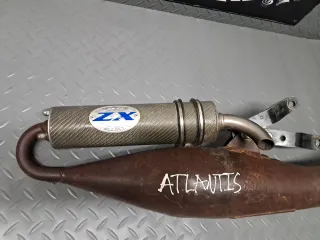 Sistema de escape -leo vince- procedente de Derbi Atlantis del año 2005. El escape tiene un acabado metálico con detalles en carbono en el silenciador - Marca: Atlantis - Modelo: Derbi Atlantis - Año: 2005 Para mas recambio de éste u otros modelos, no dudes en preguntar. #evilparts Ri:b17