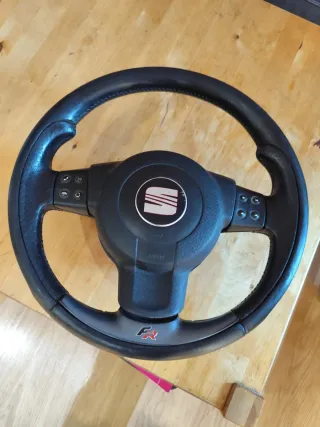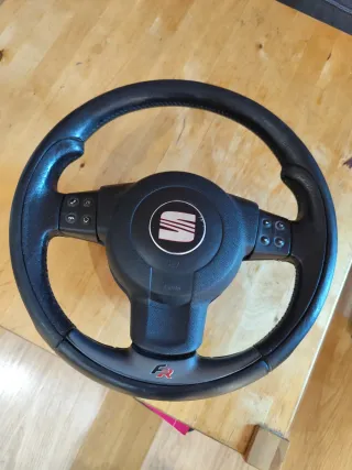 Volante deportivo para Seat León MK2 con acabado FR. - Diseño deportivo y ergonómico. - Logo FR en la parte inferior. - Material de alta calidad. -airbag incluido