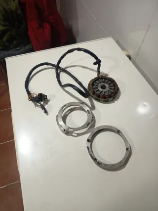 Componentes de encendido Ducati para Cagiva Mito 125. ENCENDIDO ORIGINAL DE KIT SP (sport production) - Bobinado de estator. - Conector eléctrico. - Anillos de montaje.