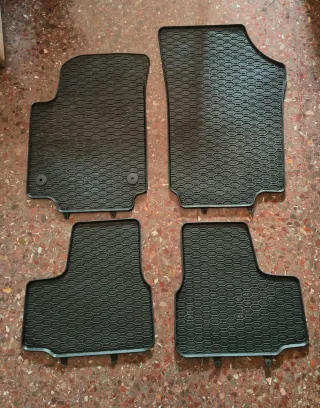Juego de cuatro alfombrillas de GOMA para SEAT Mii. Diseñadas para proteger el interior del vehículo. UN MES DE USO. - Material: Goma. - Color: Negro. - Diseño con relieve hexagonal.