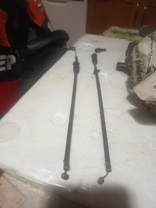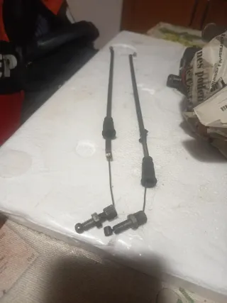Juego de cables para la válvula de escape de una Cagiva Mito 125. - Cables de acelerador. - Incluye tornillos de ajuste.