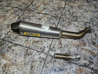 Sistema de escape Arrow para Suzuki GSR 750. Incluye silenciador y colector. - Silenciador de inoxidable con tapa de carbono. - Colector de acero inoxidable. - Logo Arrow visible. - Está en perfectas condiciones, nuevo.
