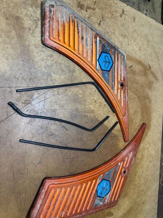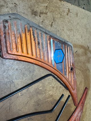 Juego de tapas para la caja de herramientas de Vespino TL y TS. Piezas de recambio con el logo de Piaggio. - Color naranja y azul. - Incluye las dos tapas. - Se venden juntas.