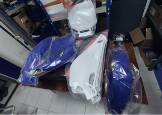 Kit de plásticos para Yamaha YZ 80, modelos de 1993 a 2001. Incluye piezas en color azul y blanco. - Guardabarros delantero y trasero. - Paneles laterales. - Portafaros delantero.