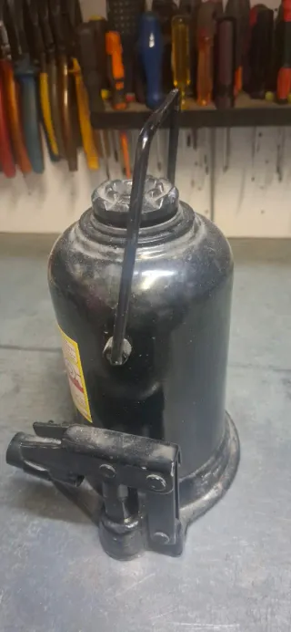Gato hidráulico de la marca Torin con capacidad de 10 toneladas. Es robusto y está diseñado para levantar cargas pesadas. - Capacidad: 10 toneladas. - Color: Negro. - Incluye manivela.
