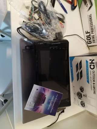 Pantalla multimedia para coche con todos sus accesorios. - Incluye manual de usuario. - Cables de conexión.