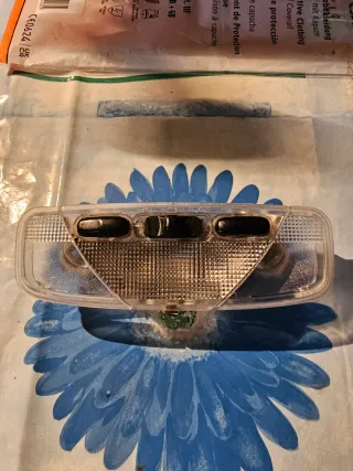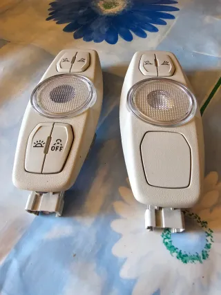 Se venden dos lámparas de interior para Ford Focus Cmax. - Incluye dos unidades. - Diseño ovalado en color beige. - Cada lámpara tiene dos botones superiores con iconos de luz y un botón inferior. - Una de las lámparas tiene un botón con el icono de un sol y otro con OFF. Precio por unidad...