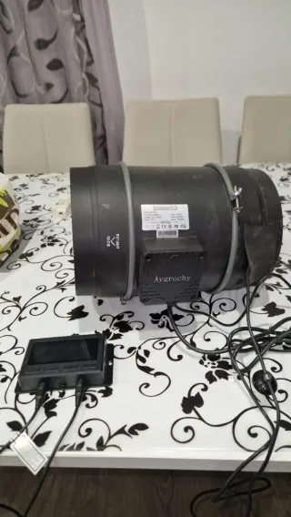 Extractor de aire con control de temperatura y humedad. - Modelo: SP200-A - Diámetro: 200 mm - Voltaje: 240V - Potencia: 100W - Caudal: 850 m³/h