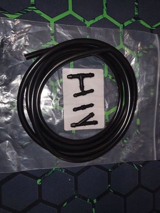 Producto nuevo y sin usar. Perfecto para conectar o reemplazar mangueras en sistemas de vacío, combustible, turbo o refrigeración. Compatible con la mayoría de modelos de coches, motos, scooters o vehículos de competición. ✅ Incluye: - 1x Tubo de goma/silicona negro (resistente al calor y a la presión). - 4x Conectores: 2 rectos + 1 en “T” + 1 adicional para empalmes. - Longitud aproximada: 1,5 - 2 metros. 🔧 Usos recomendados: - Sistemas de vacío o presión. - Sustitución de manguitos de gasolina o aire. - Instalaciones de medidores (boost, vacío, etc.). - Proyectos de tuning o mecánica ligera.