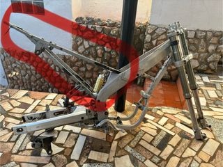 Subchasis de aluminio para Derbi Senda. - Compatible con Derbi Senda. - Amortiguador trasero. - Basculante. - Frenada trasera. _ Regalo cerradura con sus dos llaves, cableado entero creo, y soporte para la batería...