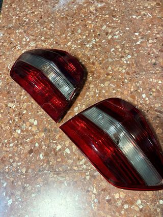 Juego de pilotos traseros para Mercedes ML del año 2008. valen para modelo del ML, desde el año 2006-2009. son del modelo 2008 con el reestyling, por eso son un poco oscuros. uno está roto por una piedra, pero pasa la ITV. sin problema, el otro está perfecto.