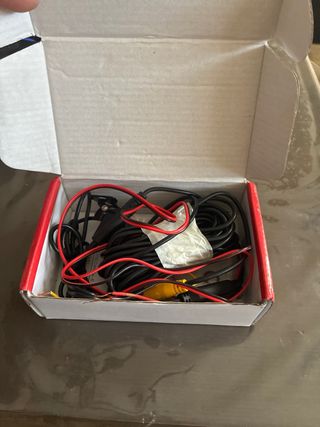 Cámara de visión trasera para coche. Incluye cables de conexión. - Conector amarillo RCA. - Cable de alimentación. Me llegó al comprar una radio de segunda mano por Wallapop y no se la puse por comprar una que iba incorporada en la luz de matrícula. Está nueva sin usar.... lleva luces LED para alumbrar por la noche ....
