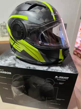 Casco de moto LS2 Vortex FF313 con acabado en carbono y detalles en amarillo neón. Diseño deportivo y moderno. - Material de fibra de carbono. - Visera con Pinlock. - Sistema de ventilación. - Cierre de doble anilla.