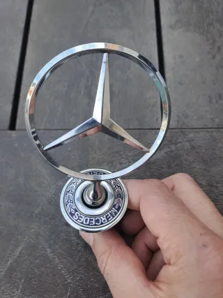 Emblema de estrella para capó de Mercedes-Benz. Pieza cromada con base. Lo llevaba un coche del 99 - Diseño icónico de tres puntas. - Acabado brillante y resistente. - Detalle del logo Mercedes en la base.