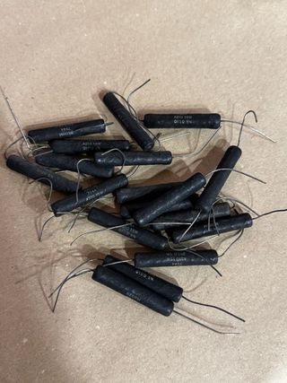 18 unidades. Precio por unidad. Lote de resistencias de hilo bobinado Vishay Dale. - Modelo AS10 15W. - Valor de resistencia 0.10Ω. - Tolerancia del 5%.