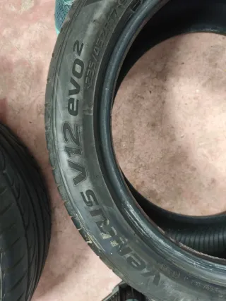 Dos neumáticos Hankook Ventus V12 evo2 en medida 255/40 R17. - Marca: Hankook - Modelo: Ventus V12 evo2 - Medida: 255/40 R17 Los neumáticos están al 80% uno de ellos tiene el pellizco que se ve en la foto.
