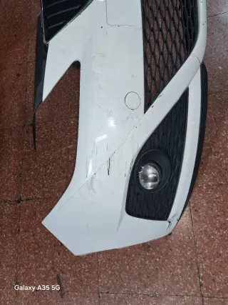 Paragolpes delantero para Seat Ibiza en color blanco. Presenta una rejilla central y detalles en negro. - Rejilla frontal de panal. - Incorpora huecos para antinieblas.