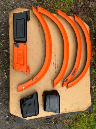 Conjunto de aletines para Suzuki Samurai. - Aletines naranjas con detalles en negro. - Piezas de plástico. - Se incluyen 4 aletines naranjas y 2 piezas negras.