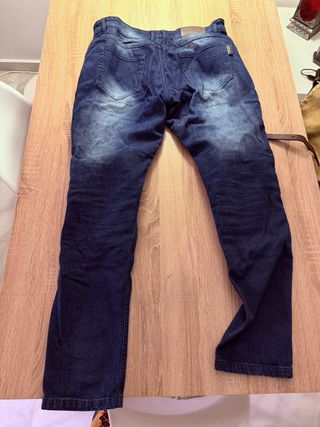 Pantalón vaquero para moto con refuerzos de Kevlar. Sin usar 2xl. Para 180-190 85-95 kgs. Protecciones homologada C1 en caderas y rodilla. Desmontables. - Diseño clásico de jeans. - Etiqueta de marca en cuero.