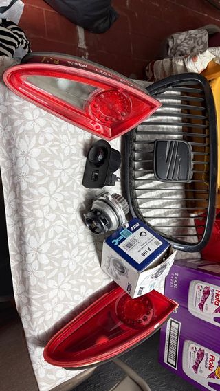 Lote de piezas para Seat Leon MK2. - Pilotos traseros. - Parrilla delantera con emblema. - Bomba de agua. - Módulo de control de espejo.