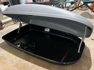 El cofre se encuentra en buen estado, tiene marcas de uso algo normal de ponerles correas para viajes largos, pero no influyen en su funcionamiento. Ventajas del producto Capacidad: 240 litros, cofre de techo Carga máxima: 50 kg Sistema de apertura: lateral Sistema de cierre con llave