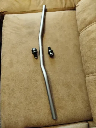 Manillar de moto de aluminio plateado, con un diseño curvo y elegante. Incluye dos contrapesos a juego.el manillar es de 22 y 72 de largo. - Material: Aluminio - Color: Plateado - Incluye: Manillar y 2 contrapesos