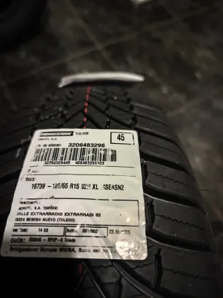 Juego de dos neumáticos Firestone Multiseason2. - Medida: 185/65R15 - Índice de carga: 92H - Tipo: All Season (todas las estaciones) - XL (Extra Load)