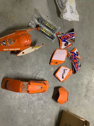 Vendo plasticos completos de ktm aproximadamente año 2002 y tambien parte de los plasticos de atras creo que del año 2007/8 y tambien palanca de cambios preguntar por disponibilidad y precio