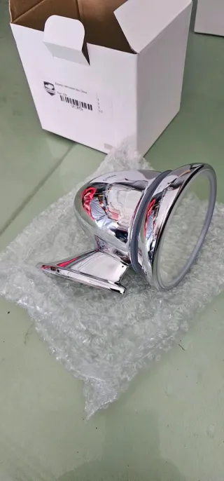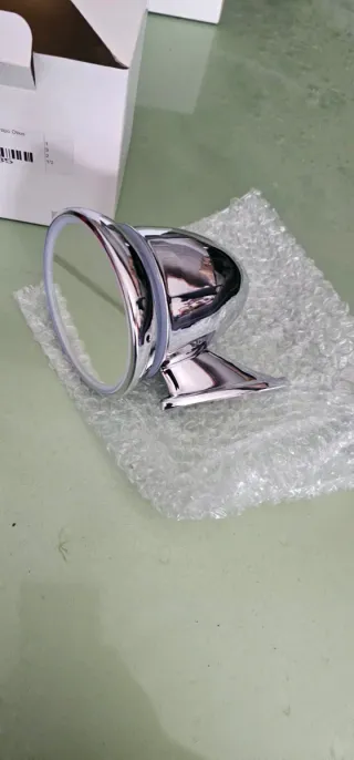 Par de retrovisores exteriores con acabado cromado, ideales para dar un toque clásico a tu vehículo. - Diseño elegante y brillante. - Montura robusta.