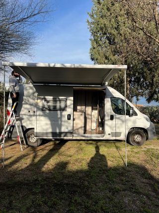 Peso 24kg | medidas: 350cm largo y 250cm toldo extraible. Carcasa aluminio. Anclaje para vientos. Accesorio pata triangular.Sistema con más de 90 adaptadores opcionales, diseñado para un cierre preciso y duradero del panel frontal, con doble seguridad y amortiguación para mayor protección. Incorpora brazos articulados reforzados y rodillo de bobinado unidireccional que aseguran una tensión perfecta y un enrollamiento correcto del tejido. Facilita el montaje de accesorios gracias al doble carril keder, la preinstalación para LED, y cuenta con pata telescópica reforzada y sistema Secure Lock para ajustar la altura del panel frontal.