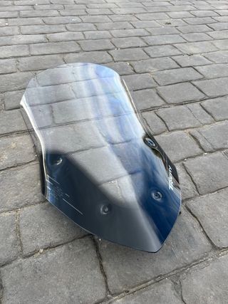 Pantalla frontal alta para Yamaha Tricity. Protege contra el viento y los elementos. - Diseño aerodinámico. - Material resistente y duradero. - Logos de la marca visibles. prácticamente nuevo, guardado en almacén. recalcar que una de las dos plataformas para los tornillos, tiene un punto de sujeción del panel a la plataforma roto, como se ve en la foto de tornillería. mencionar que los puntos importantes de sujeción a la moto están intactos. salvo ese punto de sujeción secundario, todos los demás puntos de sujeción si están intactos y en perfectas condiciones. alfombrillas para los pies de regalo