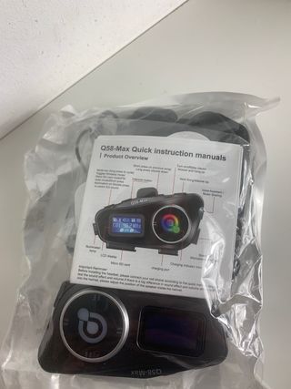 Kit de comunicación para moto Q58-Max. - Intercomunicador para casco. - Pantalla LCD. - Puerto de carga. - Indicador de carga LED.